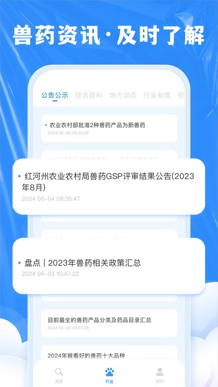 更有各类兽药行业综合资讯、公共告示、综合资料、地方动态等~