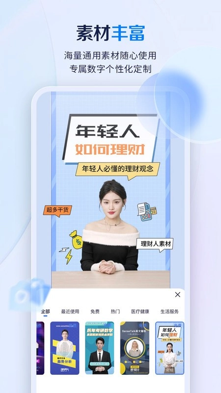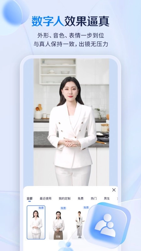 个性化定制:支持用户自定义数字人的外貌特征,包括发型、服装、背景等,满足不同场景下的使用需求。