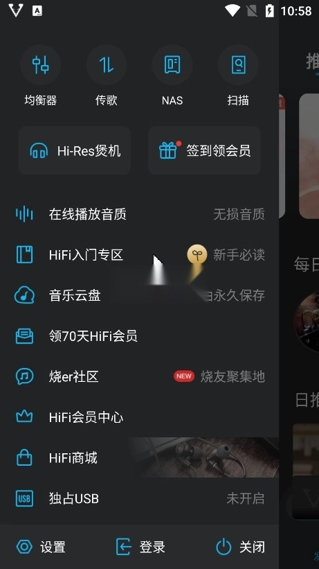 6、打开独占USB输出的功能,让你有更好的收听体验,提高音乐的音质;