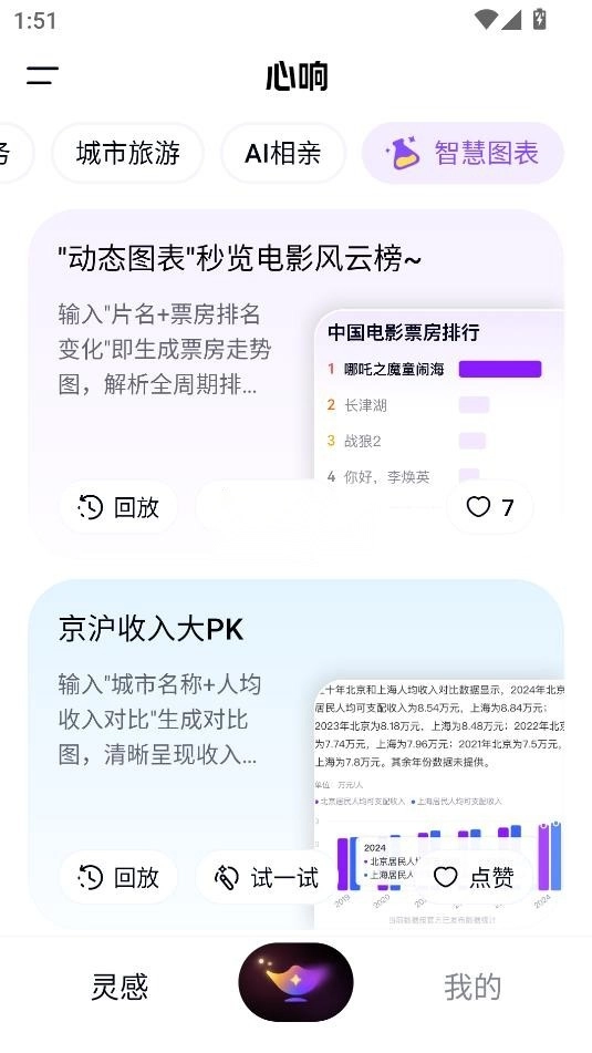 应用首页的"灵感"界面集成了哇塞、例行任务、城市旅游等多个功能频道,每个频道都提供丰富的任务模板。用户可以通过回放历史任务、试用模板或创建新任务等方式,体验从任务规划到执行完成的智能化全流程服务,让复杂问题轻松实现闭环解决。