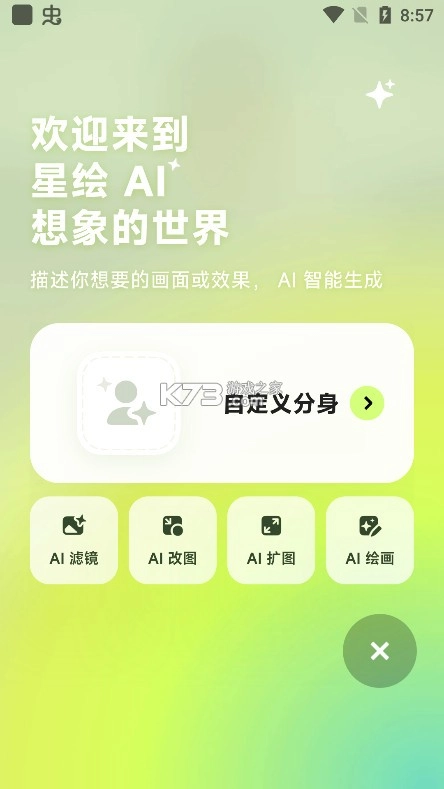 搭载先进AI生图技术的软件,它允许用户深入探索并创造一个AI驱动的虚拟世界。在这个应用中,用户可以轻易创建出AI版本的自己,并且为这个数字化分身设计多种独特的效果。通过上传图片并简单输入相关关键词,用户可以快速切换风格,将普通照片转化为像素风、赛博朋克、日式漫画等多样化的风格。这一过程既直观又易于操作,让用户在几秒钟内即可拥有个性化的图片,体验不同的虚拟人生。无论是追求复古情怀还是未来科技感,亦或是动漫迷的梦想,星绘App能够满足你所有的想象和需求。