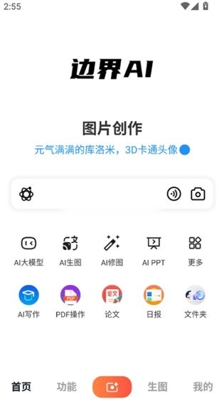 1、本站打开边界AIchat,首页展示多个核心功,点击对应图标进入。