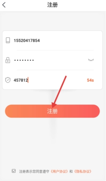 3、输入验证码,点击【注册】按钮,完成账号注册