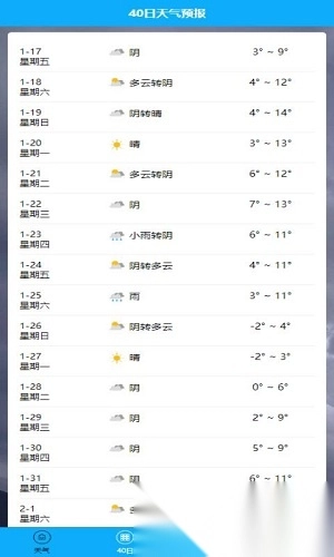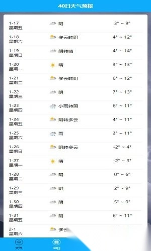 3. 提供长达40天的天气变化与温度预测。