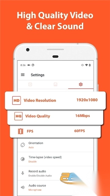 1.诸多功能可供选择,你可以在az screen recorder中设置视频分辨率,码率,屏幕方向,自定义定时停止。