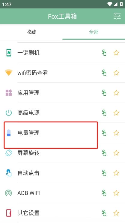 1.打开狐狸工具箱App,在"全部"中选择电量管理