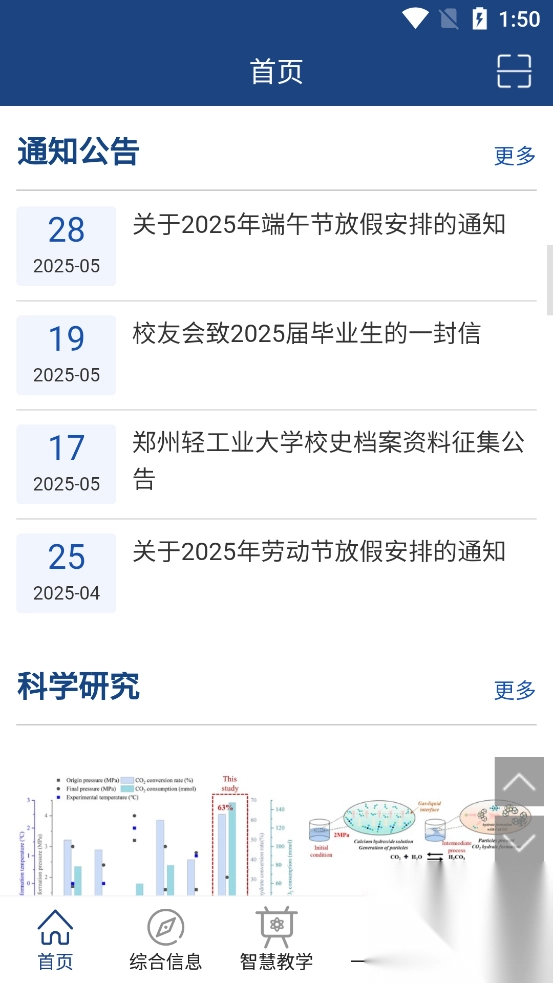 校园新闻资讯聚合:方便师生随时随地查阅学校各类新闻、通知公告、科研动态、学术讲座等信息。