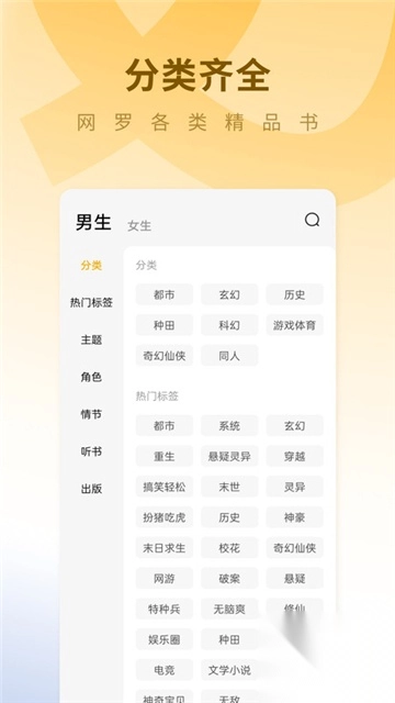 精心细阅:排版精致,支持自动聆听,亮度自适应,阅读页面主题丰富独特,各种阅读姿势皆舒适。