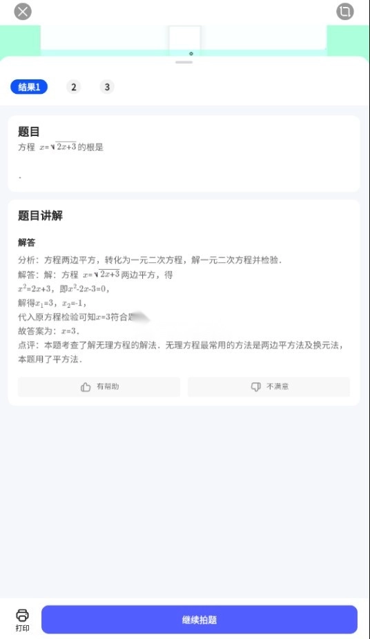 3、拍摄完题目后,点击界面下方的圆形按钮,这是启动搜题功能的按钮。夸克扫描王会立即识别并搜索你拍摄的题目,然后展示出答案以及解题思路。