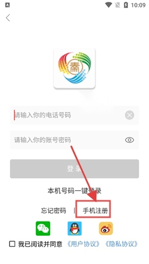 在登录界面找到手机注册功能,点击。