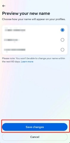 点击“姓名”,输入您想要更改的新姓名,然后点击“查看更改”。
