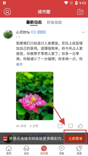 请打开乐清城市网,点击页面下方的“立即登录”选项,即可跳转至登录界面。