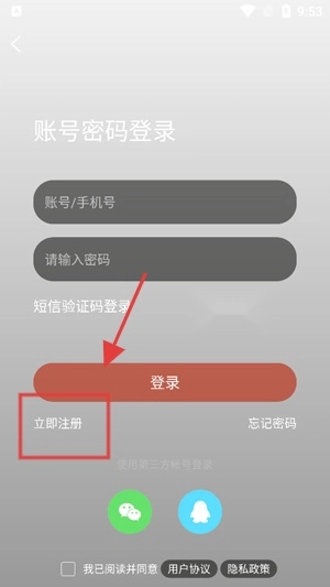 在登录界面点击下方的立即注册功能。