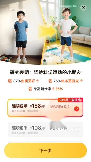 个性化定制:为6-18岁不同年龄段的儿童提供定制化的运动方案,符合其生长发育特点和需求。