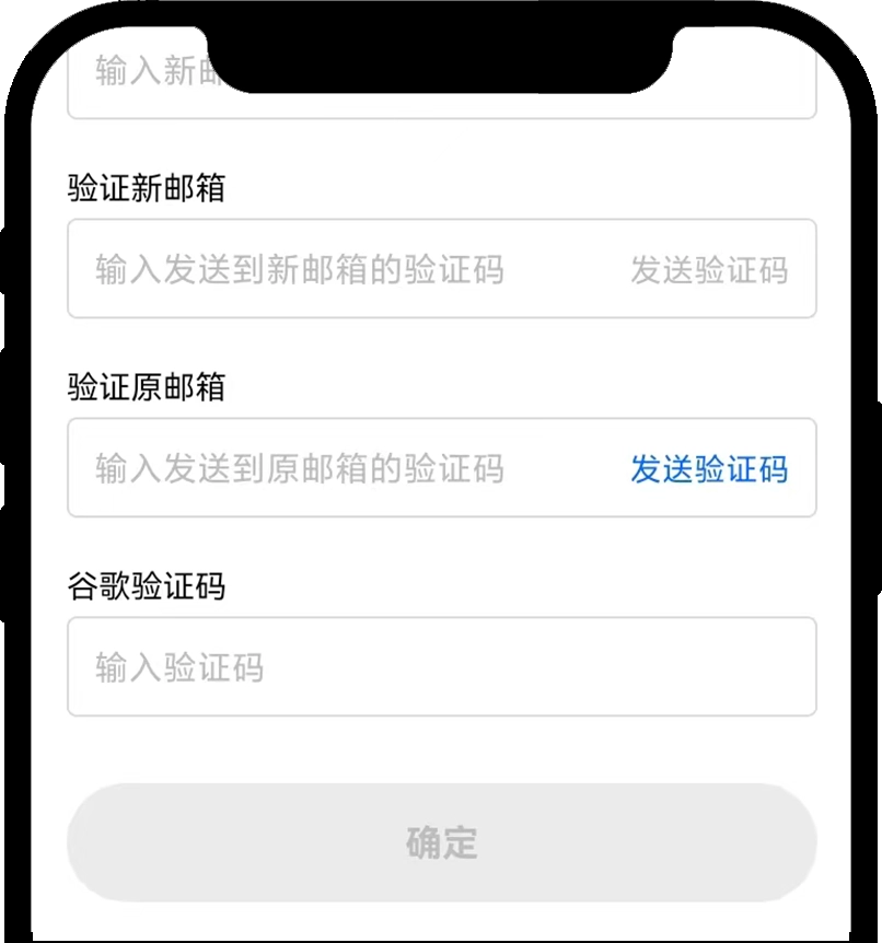 按要求输入【新邮箱】、【新邮箱验证码】、【原邮箱验证码】、【谷歌验证码】—【确定】—【迁移账号】;
