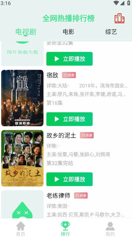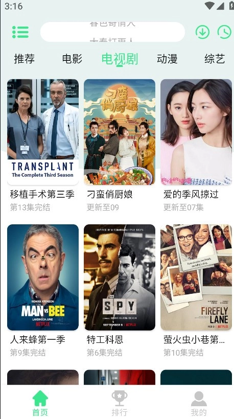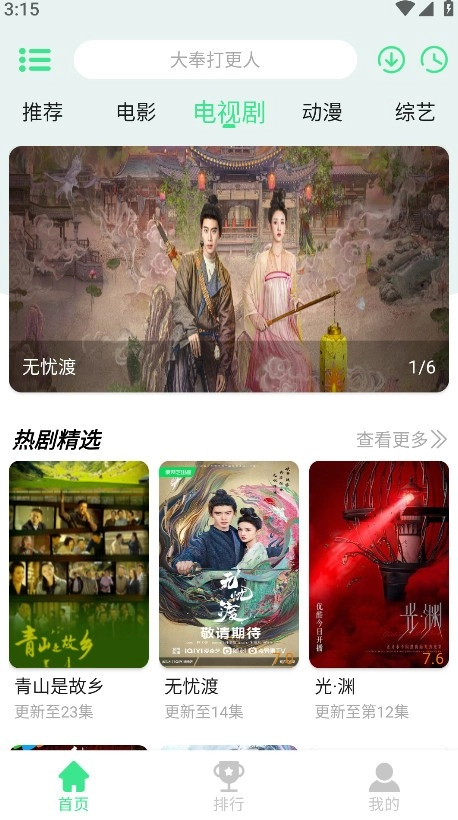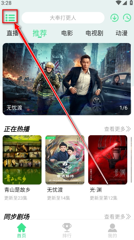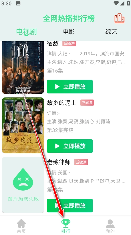 5.返回首页,点击下方的排行,即可看到全网热播的电视剧、电影、综艺榜单。