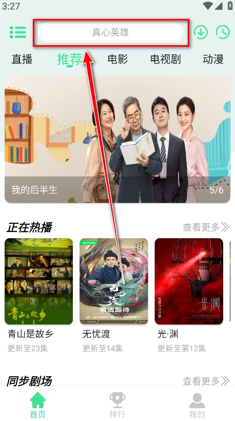 2.点击首页上方的搜素框输入关键字,即可找到我们想要看的剧。