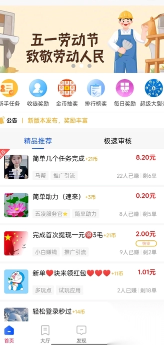 1. 用户需进入首页,查看平台为你推荐的任务。