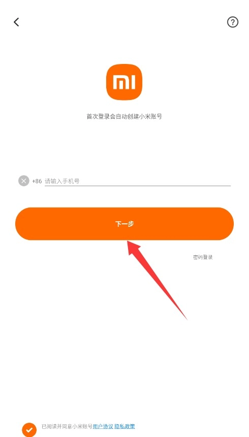 1. 初次使用小爱音箱时,务必认真阅读用户协议与隐私政策,点击“同意”按钮后进入登录界面。