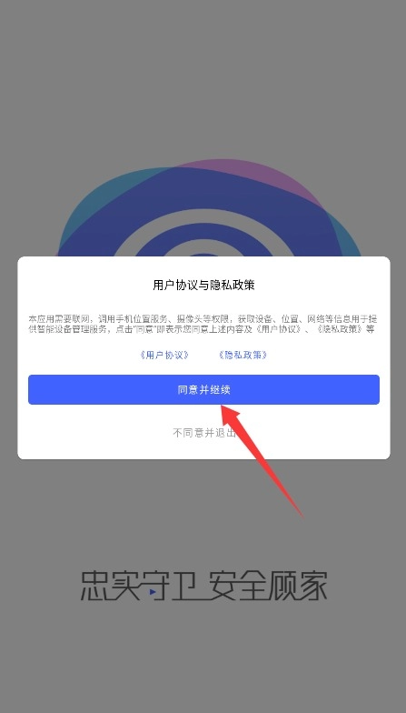 1. 初次启动应用时,需阅读并确认用户协议以及隐私条款,点击“同意并继续”后,方可进入账号登录页面。