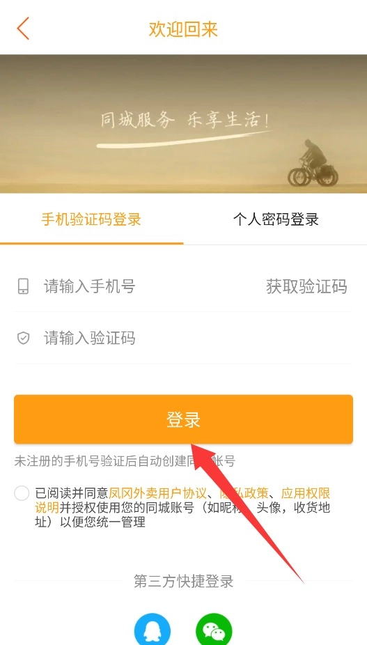 2、在登录页面输入常用手机号并获取验证码,勾选同意用户协议后完成安全验证即可登录账号。