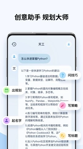 3、天工AI助手是一款功能强大、应用广泛的应用软件,无论是学习、工作还是旅游、创作,它都能够为用户提供便利和帮助。