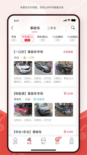 会员可通过拍卖会列表以及车辆列表的“搜索”按钮,对车辆进行能源类型、车辆类型、车辆品牌、车辆暂存地、车牌所在地、车辆年份、拍卖时间、当前价格、二手车评级(骨架、外观)、特殊筛选等任意组合,即可快速筛选出心仪车辆。