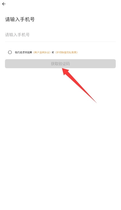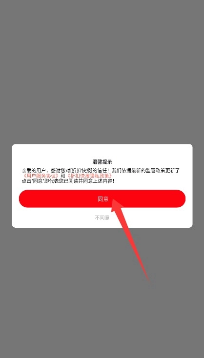 1. 启动折扣快报后,需先完整阅读隐私政策及用户协议,确认同意后,点击底部按钮进入主界面。