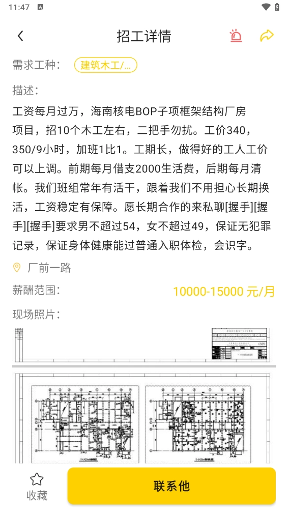 4、看到自己想要尝试的工作,点进去就可以联系包工头啦。
