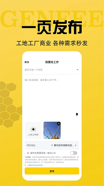 工蜂App,作为一个致力于为企业与产业工人打造全方位服务的资源共享平台,同时也是专业的蓝领人力资源共享服务平台。在工蜂App上,用户既能够寻觅心仪的工作,还能够发布各类信息,诸如寻找员工、寻找材料或者寻找机械设备等。该App覆盖面极为广泛,囊括了来自全国各地的工作信息以及其他丰富的资源信息,使用户能够在此轻松便捷地找到契合自身需求的信息。
