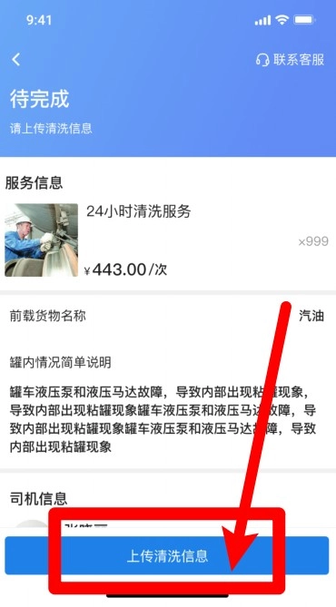 4.进入货满e家清洗服务界面,点击“上传清洗信息”填写清洗内容。