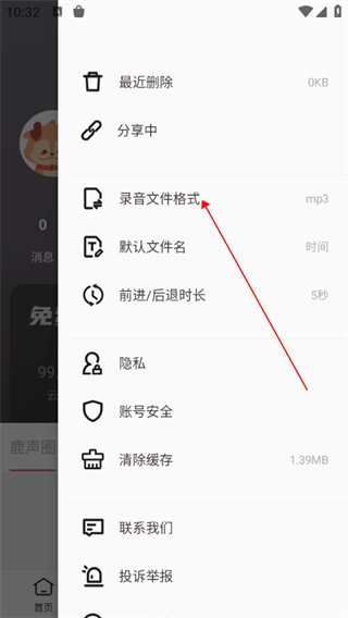 3、进入到随声鹿设置中,点击【录音文件格式】。