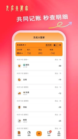 2、通过这样的方式,用户可以更好地管理家庭开支,无名火管家促进家庭成员之间的沟通与合作。