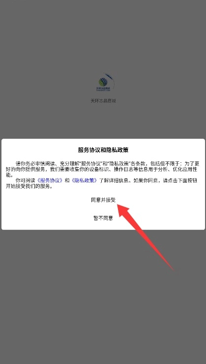 1. 启动应用之后,要认真阅读用户协议以及隐私政策,点击“同意并接受”按钮,方可进入登录界面。