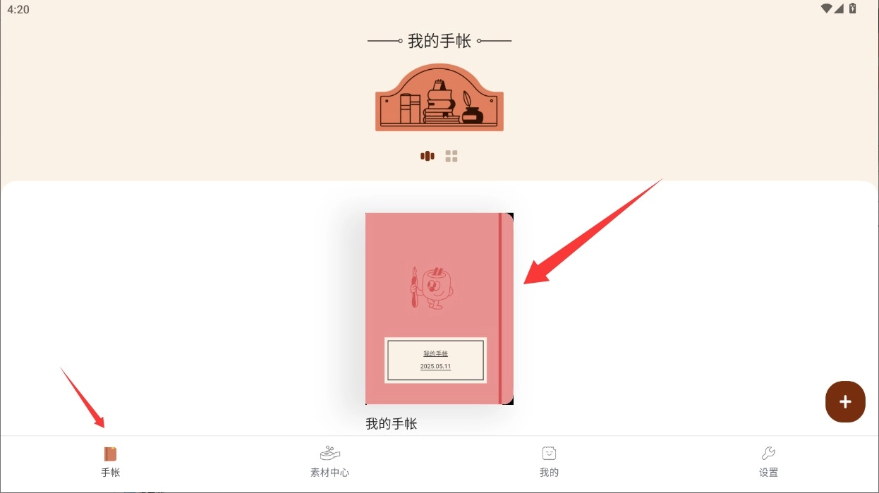 1. 启动应用,轻轻点击底部导航栏的手账选项,进入个人手账中心,即可看到所有作品。