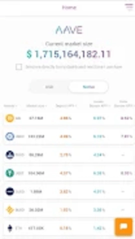 2. 支持多种加密货币:该应用支持多种加密货币,并且能够进行aave等稳定性数字资产的存取操作。