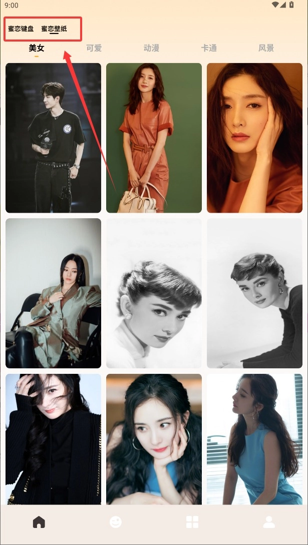 2、轻点左上角的壁纸按钮,就能随意切换背景图案,搭配不同风格的键盘主题打造个性化界面。