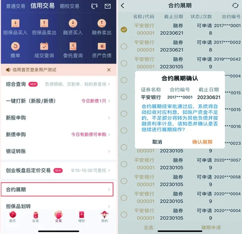 您的每一笔融资融券交易的最长期限不超过六个月,负债合约到期日前40个交易日内可以通过优理宝进行合约展期,如有展期需求您可在我司交易系统正常开放时间提交合约展期申请。(展期最新要求可查询兴证业务公告)
