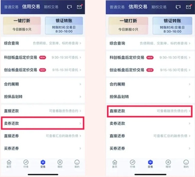 您可以通过选择直接还款或卖券还款的方式,偿还融资负债。
