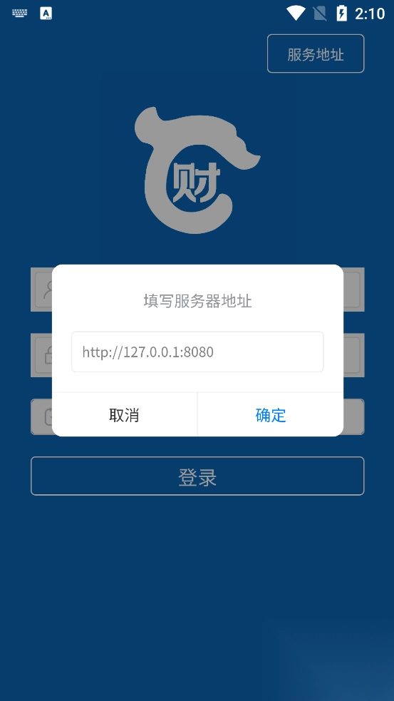 请打开您的辽财通App,于登录界面轻点右上角的服务器地址。