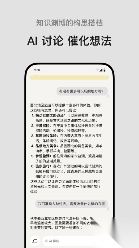 6、用户能够与AI讨论你的想法和思路,让智能算法智能地为你拓展,并且能根据你的想法生成所需内容。
