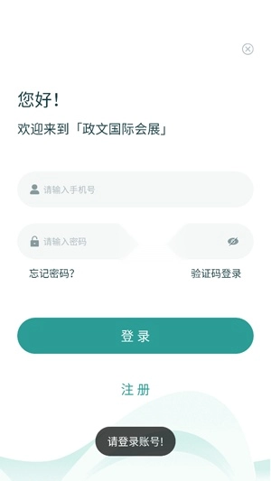 请打开合肥会展App,进入“我的”界面后,点击登录注册功能。
