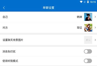6、可以设置自己和对方的头像,还可以设置聊天背景图片;