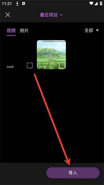 3.选择需要处理的视频后点击导入