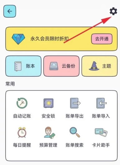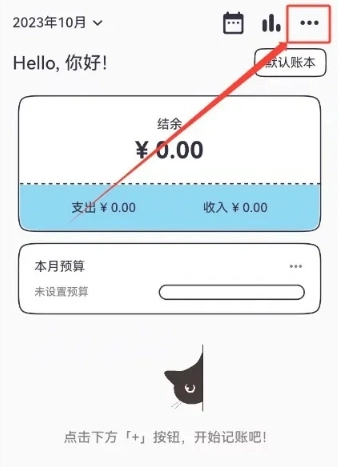 1. 开启奇妙记账,于首页右上角点击【...】图标按钮