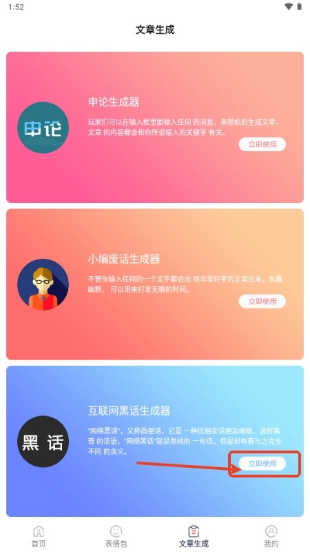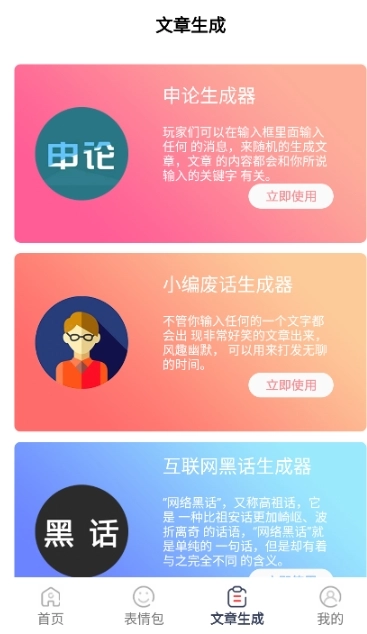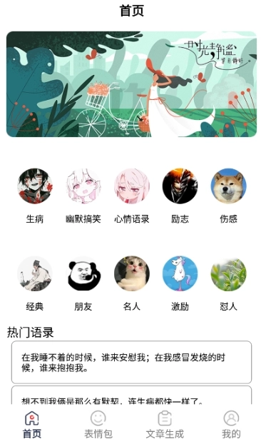表情文案狗是一款能自动生成文案的软件。借助它,用户不仅能一键生成所需文案,还能找到各式各样丰富的表情包,随时随地存储到手机使用。它助力用户轻松创作出有趣生动的文案内容,而且软件完全免费,使用起来极其便捷!