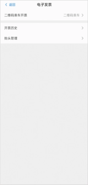 进入电子发票页面后,点击「二维码乘车开票」,进入订单选取页面。
