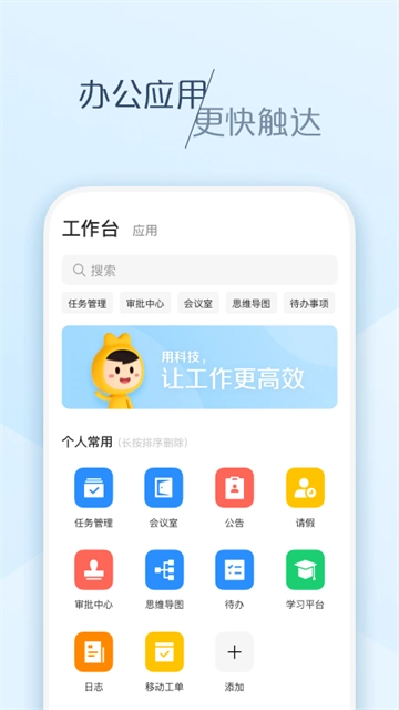 【工作台】支持用户自定义常用应用,进行应用搜索,快速触达服务