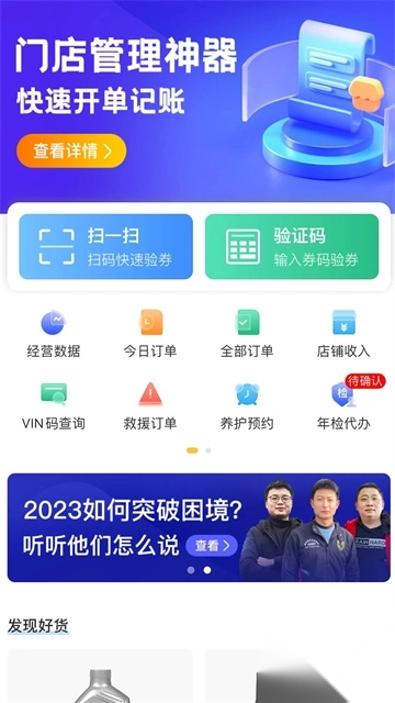2、在首页可以看到有很多功能比如今日订单、全部订单、店铺收入、VIN码查询等等;