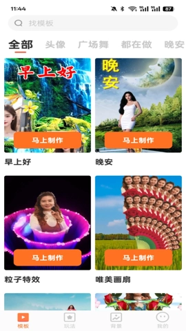 1、于可秀界面里,您能够看到各式各样的视频模板,其类别丰富,包含广场舞、问候语、表白、形象照等多个方面。